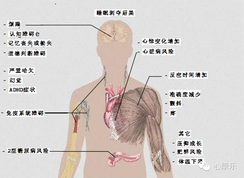 长期的睡眠剥夺与不足可对人体产生微妙的影响,比如会抑制免疫细胞的活动,而这些细胞是用来对抗病毒感染和癌症的。这也可以解释为什么每天睡7-8小时的人比长期被剥夺睡眠的人长寿。当身体被病毒或细菌感染后,我们一般需要睡得更多,以增加免疫细胞的活力。因此,如果你患重感冒了,你需要好好睡上一大觉。长期缺乏睡眠还会改变人体的新陈代谢和荷尔蒙功能,使人过早衰老,并导致肥胖、高血压和记忆受损等情况。
