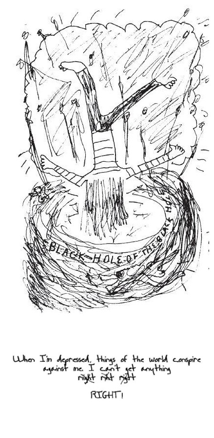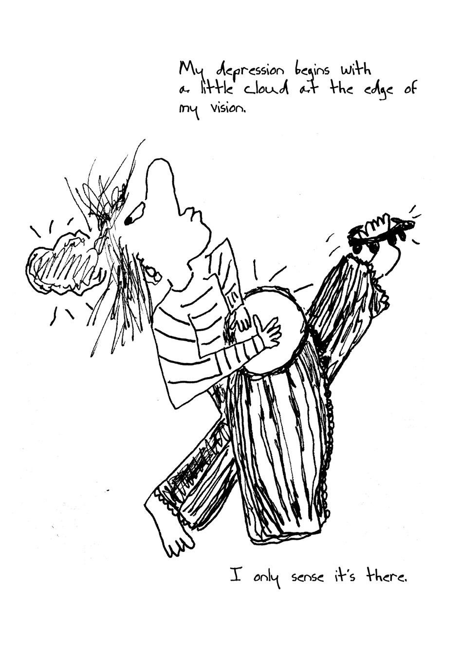"我感觉到他们的藐视。那朵小云渐渐扩大。起床变得越来越难。我对生活没了兴趣。我不想打扫房间,不想清楚垃圾,不想洗澡。没什么事情值得一提。"