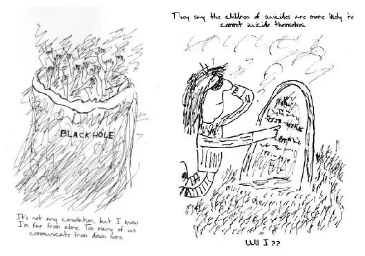 "我被一塌糊涂的生活埋葬。朋友们试着帮我,可我不让他们接近。我总是拒绝,还常常骂他们。我担心人们发现我的抑郁症,不再理我。"